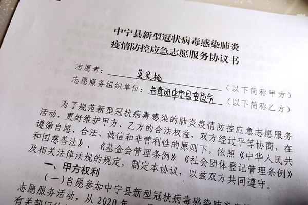 當我看到了河南共青團招募志愿者的時候,也心想著什么時候能為家鄉的疫情防控做些什么。終于,就在我思考怎么才能貢獻出一份自己的力量的時候,1月29日上午,團縣委的公眾號發布了招募志愿者的消息,迫不及待的我當天下午就去參加了縣醫院緊急組織的培訓,因為時間有限,培訓在室外進行,雖然天氣寒冷,但這絲毫沒有阻擋我們志愿服務的熱心,果斷地簽訂了與團縣委的服務協議。