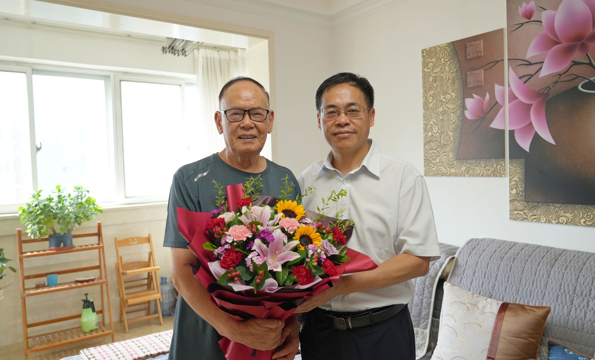 每到一位老教師家中,校領導與老同志促膝交談,詳細詢問了他們的生活起居、健康情況、家庭狀況及生活中遇到的困難等,充分肯定了他們長期以來為黨和學校教育事業的建設和發展所做的貢獻,并對老同志們退休不褪色、離崗不忘校,始終心系學校表示衷心感謝。校領導還向離退休教師代表介紹了學校第四次黨代會籌備情況、近期各項事業展狀況、取得的成績和未來的規劃,虛心聽取了老教師們對學校建設和發展的意見和建議。校領導叮囑老教師們保重身體、愉悅精神、安享晚年,希望他們一如既往地關心和支持學校各項事業的發展,積極為學校獻言獻策、發光發熱,并祝愿他們身體安康、生活幸福、教師節快樂!