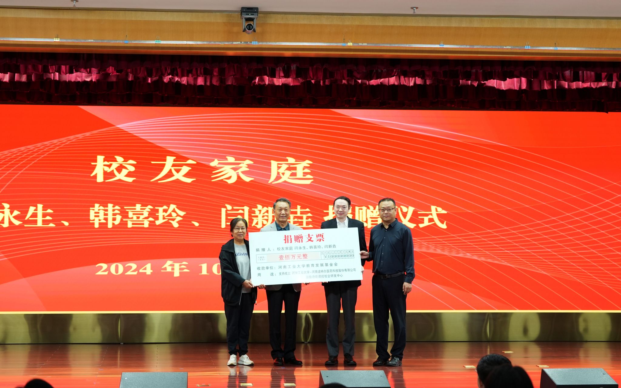 閆永生以“校友家庭”名義為學校捐贈,校長吳智深代表學校接受捐贈。武漢東昌倉貯技術有限公司、河南省南街村(集團)有限公司分別與學校簽署了合作協議。