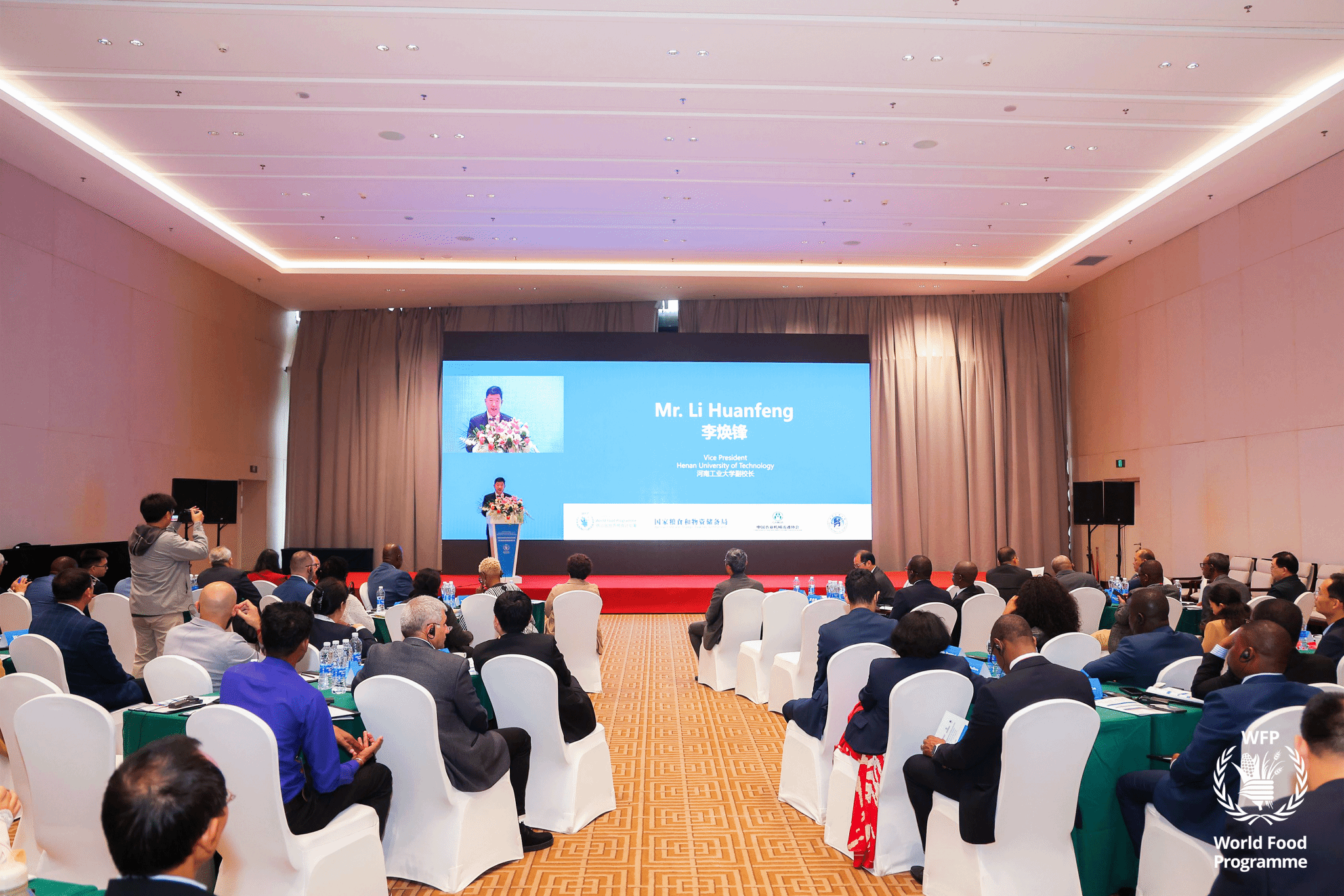 聯合國世界糧食計劃署駐華代表趙兵、國家糧食和物資儲備局外事司副司長曹穎君、中國國際經濟技術交流中心副主任張翼、河南工業大學副校長李煥鋒、津巴布韋公共服務、勞工和社會福利部常務秘書西蒙·馬桑加、中國農業機械流通協會秘書長陳濤,布隆迪駐華大使館大使等9個國家的外交使節、亞太經社會可持續農業機械化中心等國際組織,與來自世界上26個國家的政府農業部門、科研院所、高校、企業、組織100余名代表參會。
