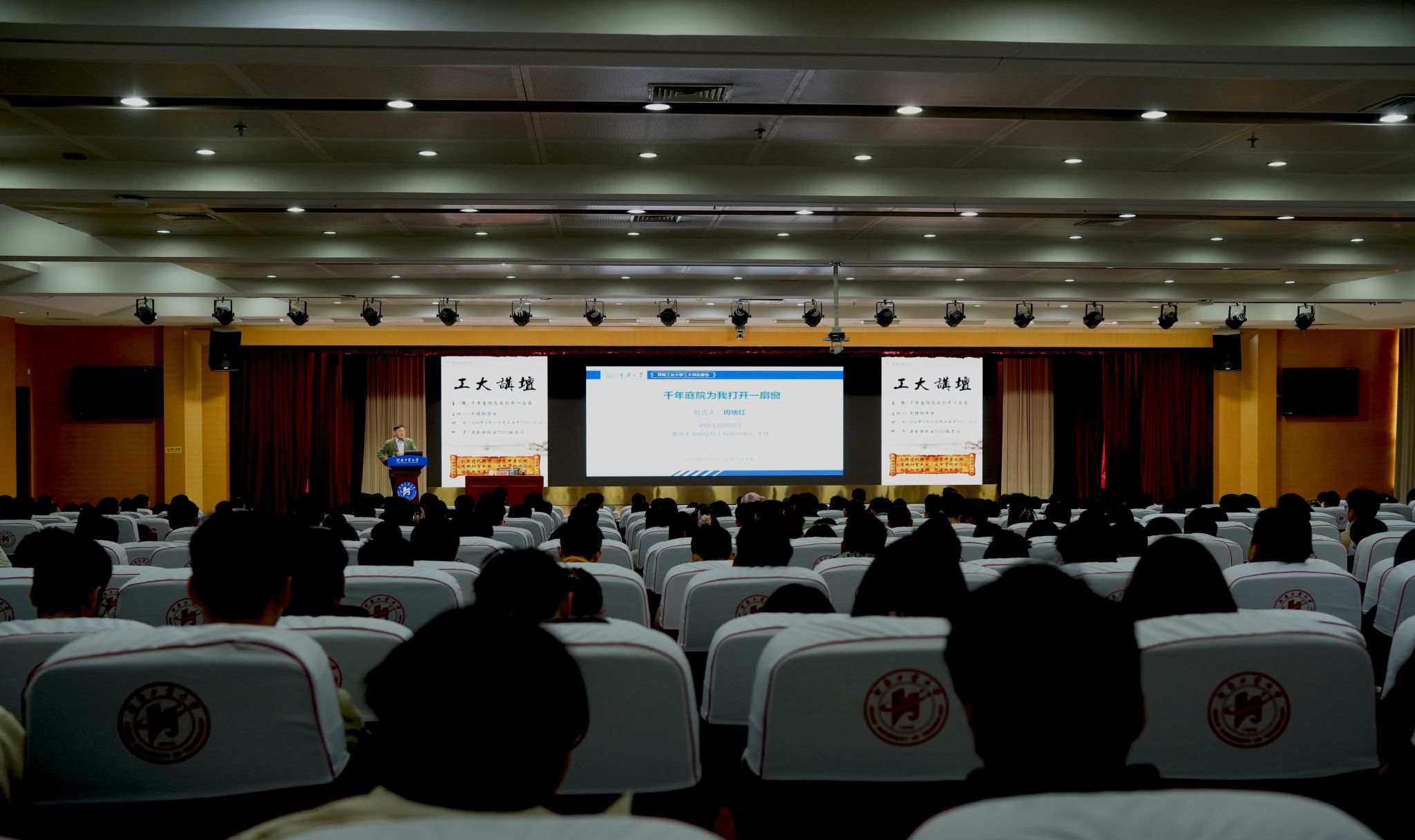 2024年12月3日,中國工程院院士、重慶大學原校長周緒紅教授受邀做客工大講壇,以“千年庭院為我打開一扇窗”為主題作報告。本次報告會由河南工業大學主辦,河南工業大學土木工程學院(建筑學院)、鄭州大學土木工程學院、河南理工大學土木工程學院、華北水利水電大學土木與交通學院承辦。來自4所高校的領導與師生代表近500人聆聽了報告。報告會由河南工業大學校長吳智深主持。