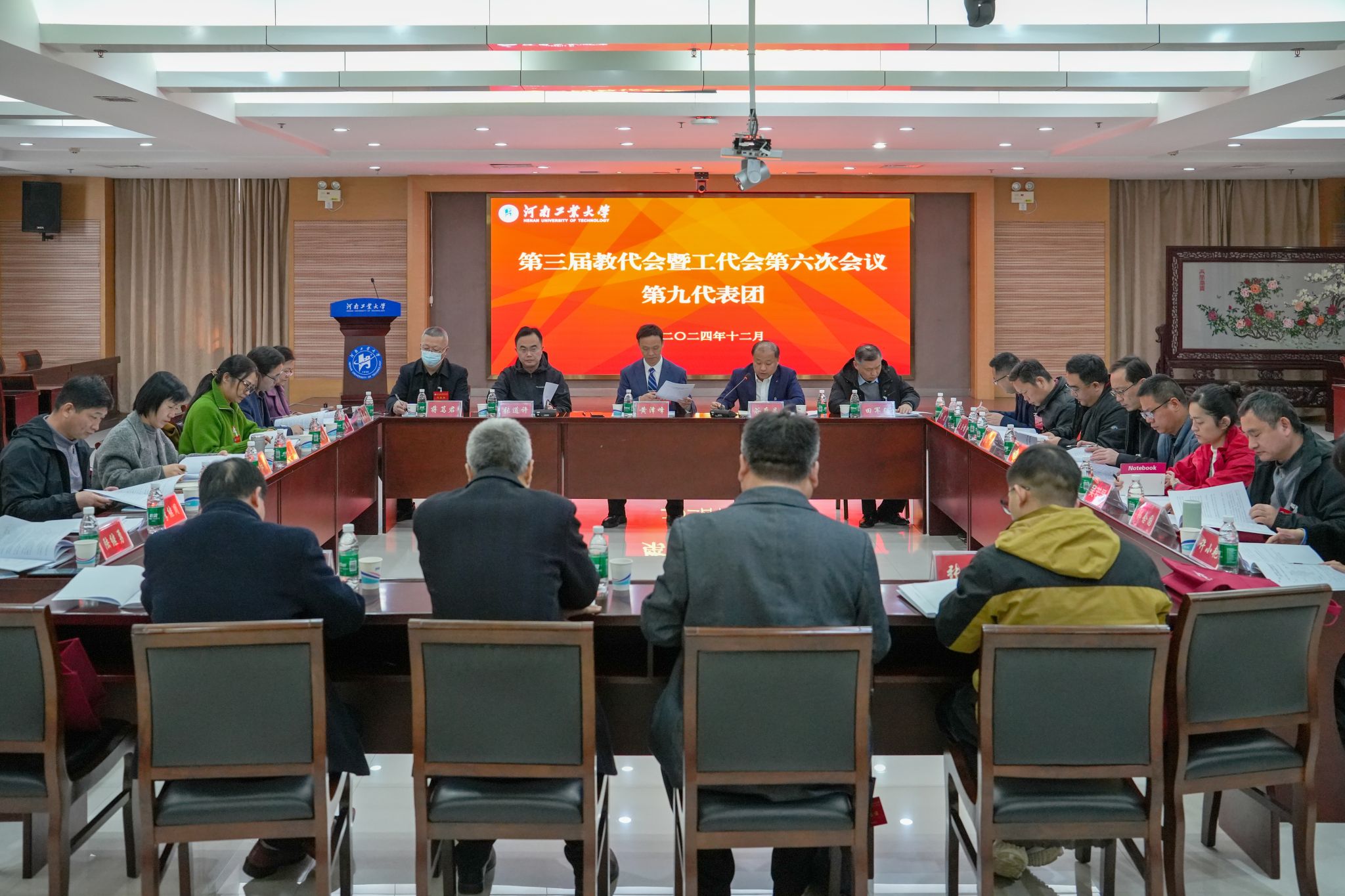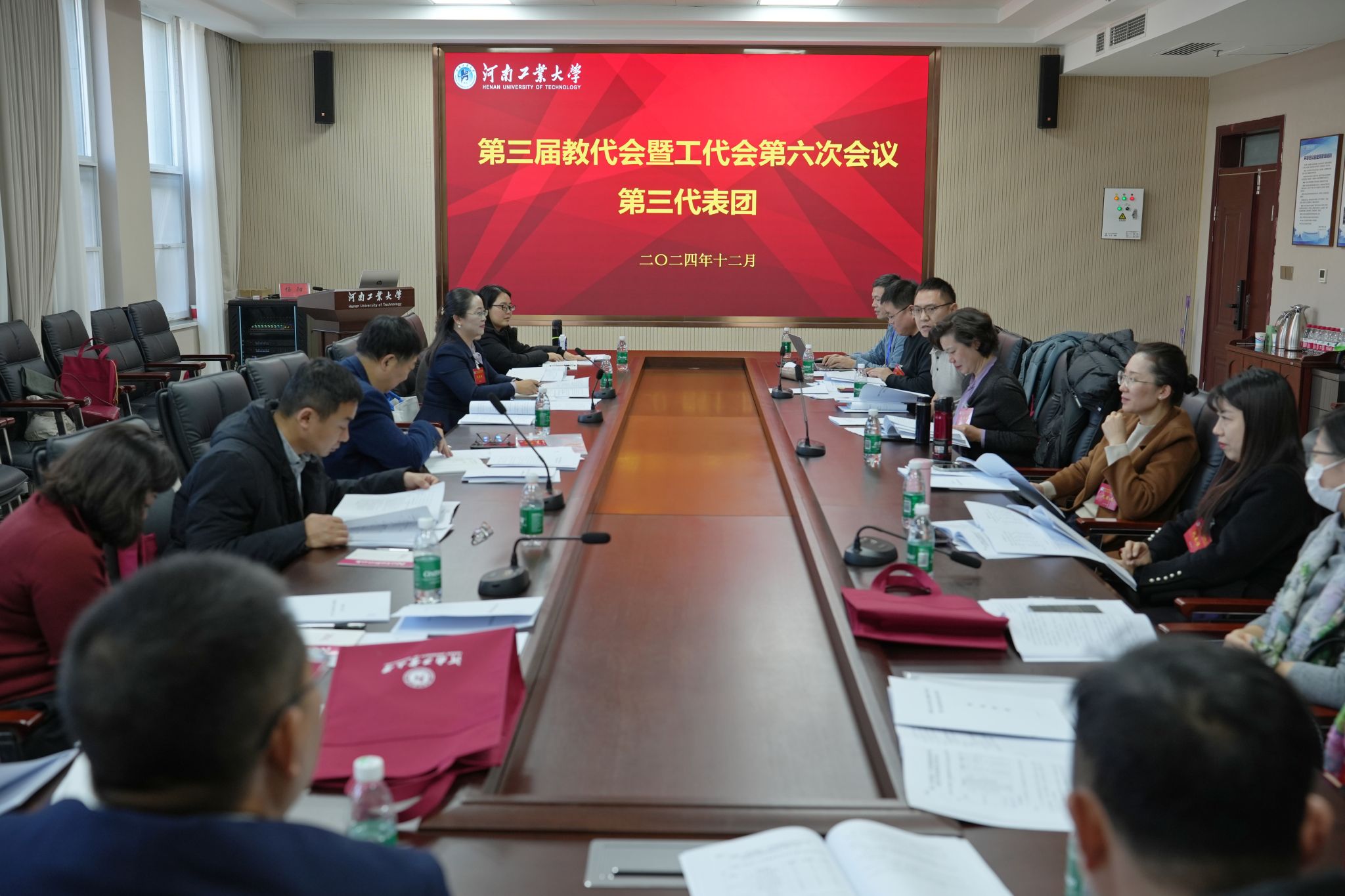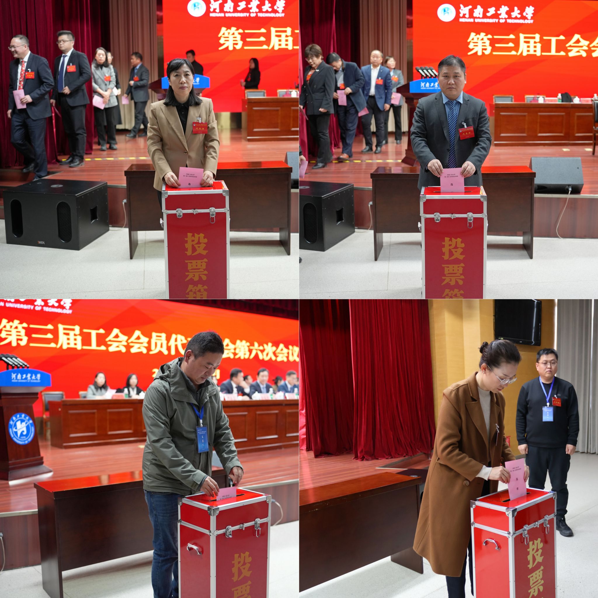6日下午,大會補選了第三屆工會委員會委員,通報了各代表團的討論情況,表決通過了《河南工業大學崗位聘任與任務考核工作方案》《河南工業大學績效工資實施方案》《河南工業大學關于加強和改進專業技術人員職稱評聘工作的意見》,審議通過了《河南工業大學第三屆教職工代表大會第六次會議決議》。