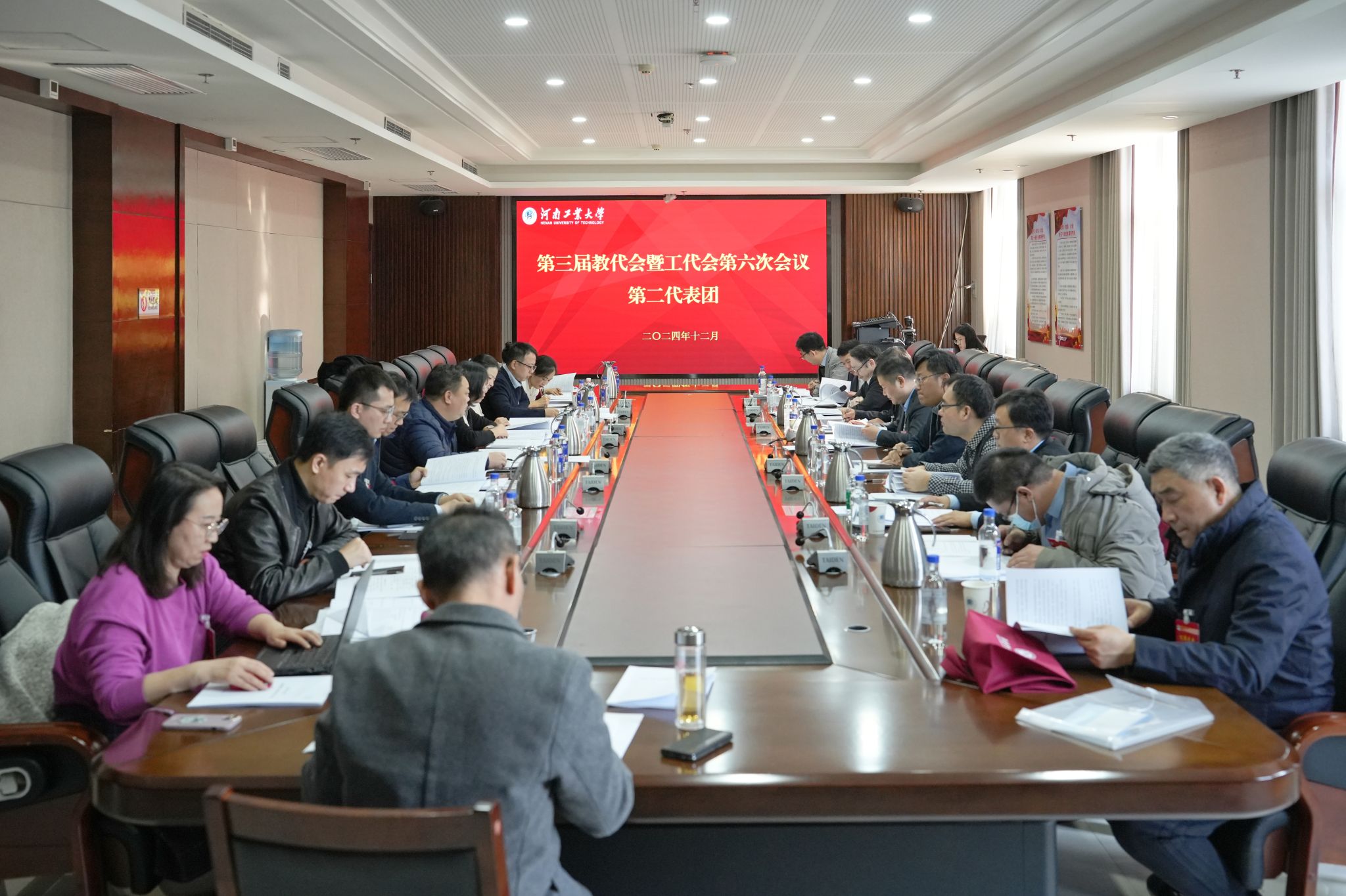 12月6日,在雄壯的國歌聲中,河南工業大學第三屆教職工代表大會暨工會會員代表大會第六次會議在學術報告廳拉開帷幕。會議由學校黨委副書記、工會主席周相寅主持,200余名大會代表、列席代表出席本次大會。