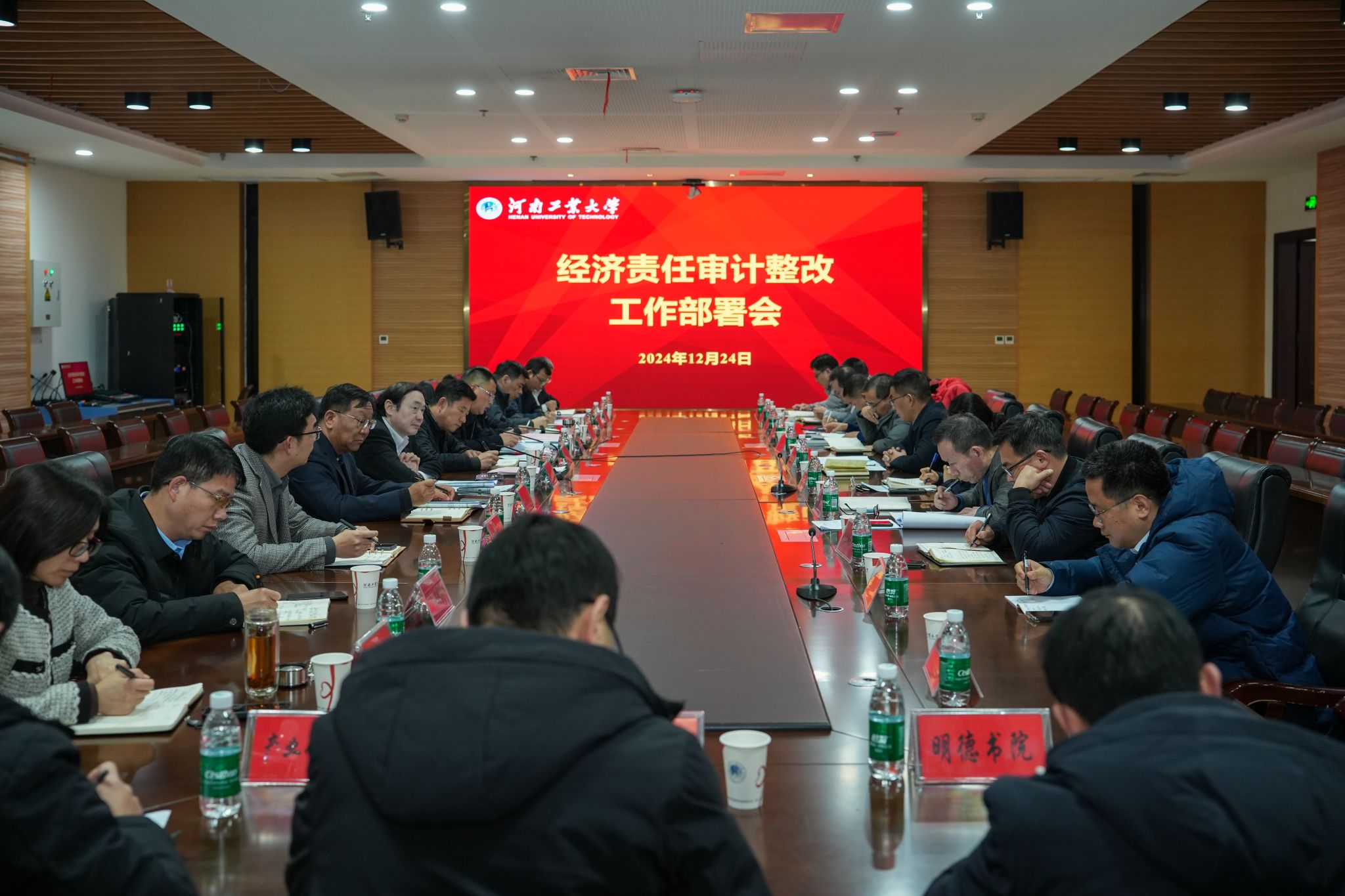12月24日下午,學校在蓮花街校區學術報告中心D204會議室召開經濟責任審計整改工作部署會,旨在全面落實經濟責任審計整改要求,進一步提升學校內部治理水平和經濟活動的規范性。校長吳智深,副校長李煥鋒,校紀委書記、監察專員張玉安出席會議,經濟責任審計整改責任單位主要負責人參加會議。會議由李煥鋒主持。