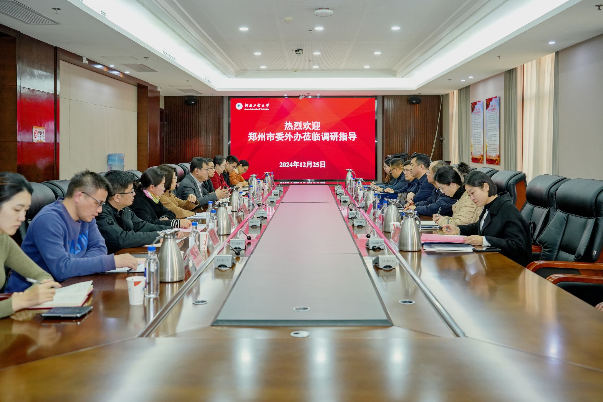 12月25日,鄭州市委外辦主任劉亞濤一行7人到我校調研外事工作,洽談合作事宜。國際交流與合作處、外語學院、國際教育學院、教育培訓學院負責同志陪同調研。