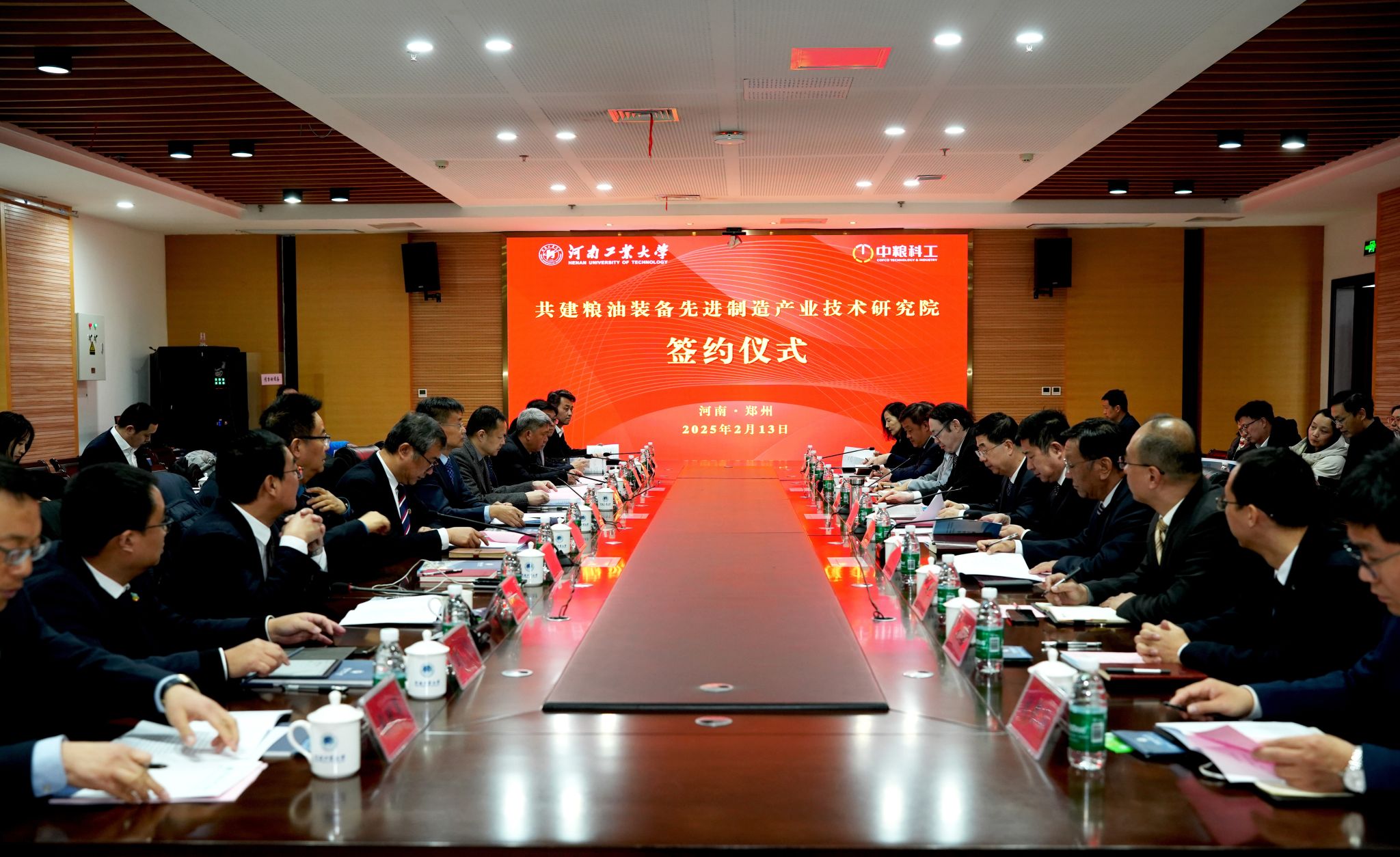 2月13日,我校與中糧科工股份有限公司(以下簡(jiǎn)稱“中糧科工”)共建糧油裝備先進(jìn)制造產(chǎn)業(yè)技術(shù)研究院(以下簡(jiǎn)稱“研究院”)簽約儀式在蓮花街校區(qū)隆重舉行。中糧集團(tuán)黨組成員、副總經(jīng)理、中糧科工董事長(zhǎng)朱來(lái)賓,中糧科工黨委書記、總經(jīng)理葉雄,副總經(jīng)理李曉虎、總會(huì)計(jì)師張楠、副總經(jīng)理陳濤,我校黨委書記劉志軍,校長(zhǎng)吳智深,副校長(zhǎng)李煥鋒、白艷紅,紀(jì)委書記張玉安出席簽約儀式。中糧科工相關(guān)部門負(fù)責(zé)人,我校相關(guān)單位負(fù)責(zé)人及教師代表參加簽約儀式。儀式由校長(zhǎng)吳智深主持。