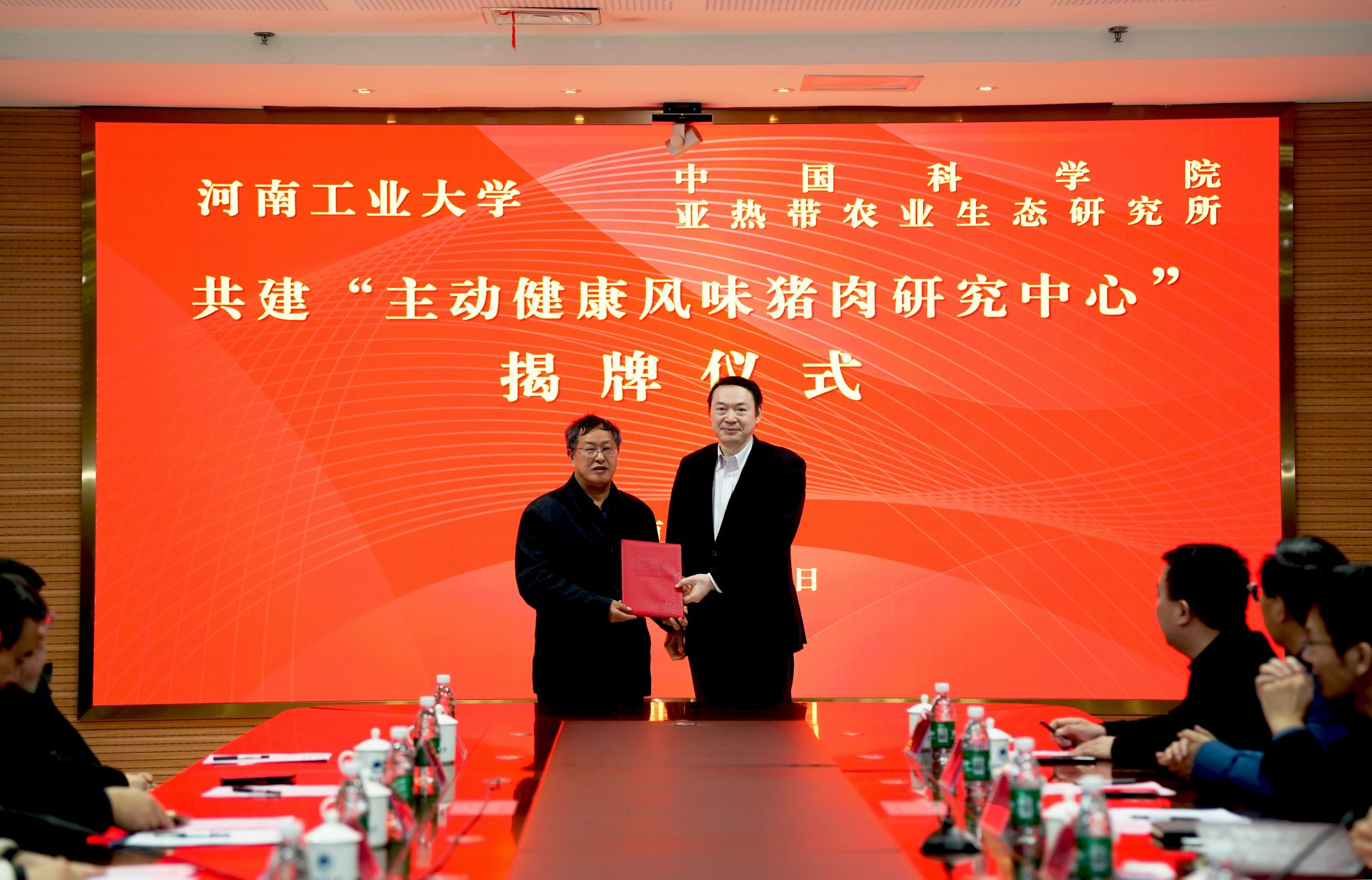 學校與中國科學院亞熱帶農業生態研究所舉行共建“主動健康風味豬肉研究中心”揭牌儀式