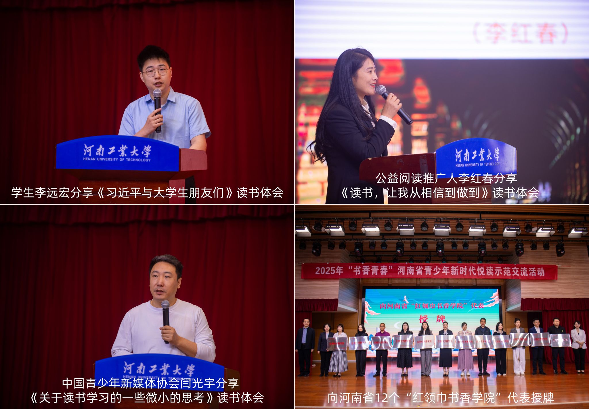 為深入貫徹習近平總書記關于“要提倡多讀書,建設書香社會”的重要指示精神,引領青少年在閱讀中成長,深入推進全民閱讀在青少年群體的落地,4月22日,在第30個世界讀書日來臨之際,“書香青春”河南省青少年新時代悅讀示范交流活動于我校圓滿舉行。本次活動以“四高四爭先 青年勇?lián)敗睘橹黝},由團省委、中原出版?zhèn)髅郊瘓F、省青聯(lián)、省學聯(lián)、省少工委主辦,河南工業(yè)大學、河南省新華書店發(fā)行集團承辦。