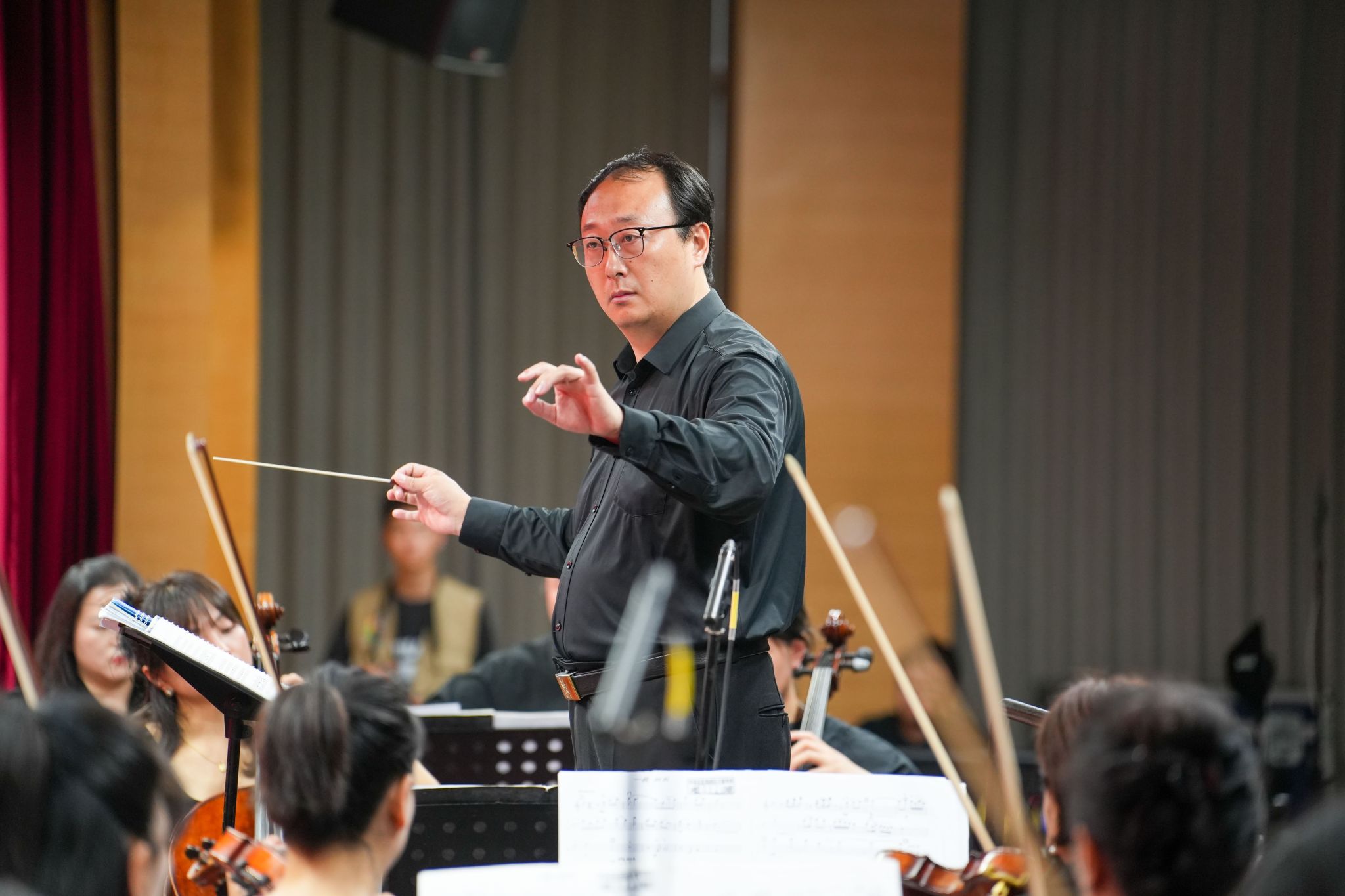 本次音樂會特邀中國交響樂團馬季先生任樂團指揮。音樂會在管弦樂《卡門》序曲中拉開帷幕,電影《海霞》組曲“織網”和“豐收”悅耳動聽,仿佛帶領大家走進海邊小鎮漁民們勤勞而充滿希望的生活畫面;《溜冰圓舞曲》優雅舒緩,輕松歡快,讓大家感受到音樂的樂趣;伴隨著《匈牙利舞曲第五號》演奏,在場師生體驗了一場充滿激情與活力的音樂;交響組曲《炎黃風情》用絢麗多彩的旋律講述中華大地上的動人故事,引發共鳴;《大起板》旋律奔放,充滿活力,讓大家感受到獨特的中原文化內涵;弦樂合奏《帕拉迪奧》《良宵》,管弦樂演奏《春之聲圓舞曲》《北京喜訊傳邊寨》等作品充分展現了經典音樂之作的魅力,音樂會在《我的祖國》豪邁熱烈的旋律中圓滿結束。