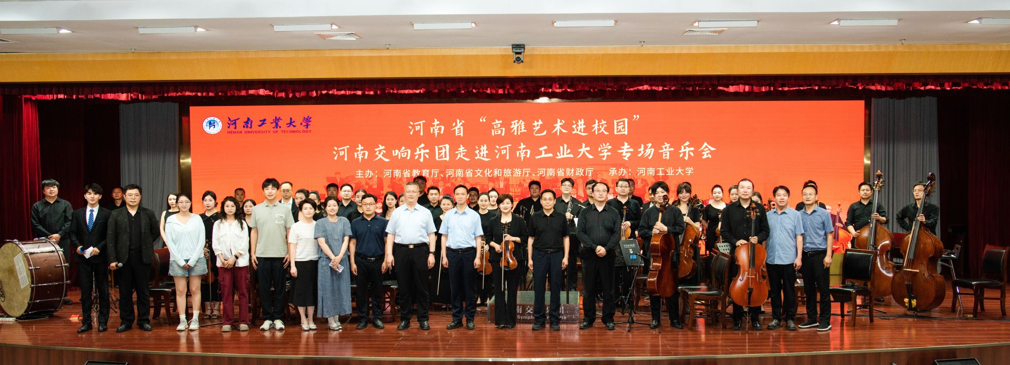 5月21日晚,由省教育廳、省文化和旅游廳、省財政廳主辦的“高雅藝術進校園”河南交響樂團走進河南工業大學在蓮花街校區學術報告中心D303成功舉辦,校黨委副書記、工會主席周相寅,校黨委副書記黃澤峰,校紀委書記、監察專員張玉安出席活動,來自各職能部門、各學院(書院)的500余名音樂愛好者、師生代表一起聆聽了這場音樂盛宴。