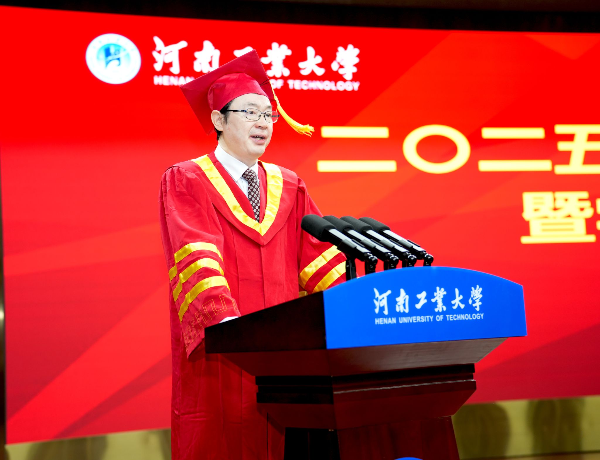 牢記教誨赴山海,挺膺擔當再啟程。6月6日上午,河南工業大學2025屆畢業生畢業典禮暨學位授予儀式在蓮花街校區學術報告中心D303報告廳隆重舉行。全體在校校領導在主席臺就座,學校各單位負責人,教師代表及畢業生、留學生代表參加畢業典禮。校長、校學位評定委員會主席吳智深以“志存高遠 篤行不怠 奮力書寫無悔青春的時代華章”為題深情寄語全體畢業生,典禮儀式由副校長鄧淼磊主持。