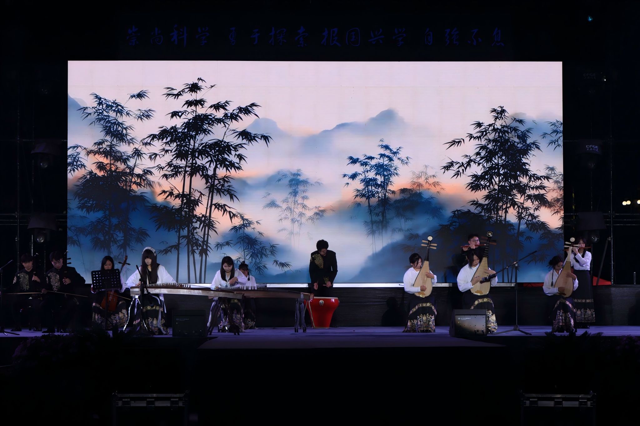 “同心聚力綻新彩”聚焦協作與創新,展現多元文化魅力。管弦樂《濯海令》以恢弘旋律描繪了“百川歸海”的壯闊意境;《阿刁》《青春舞曲》《相思瑤》等歌曲聯唱,展現了民族文化的魅力與奮斗活力;古典舞《清庭云月》以優雅舞步詮釋傳統美學;創意走秀《四時序》則將大學四年的成長歷程巧妙融入四季變換的詩意敘事之中。