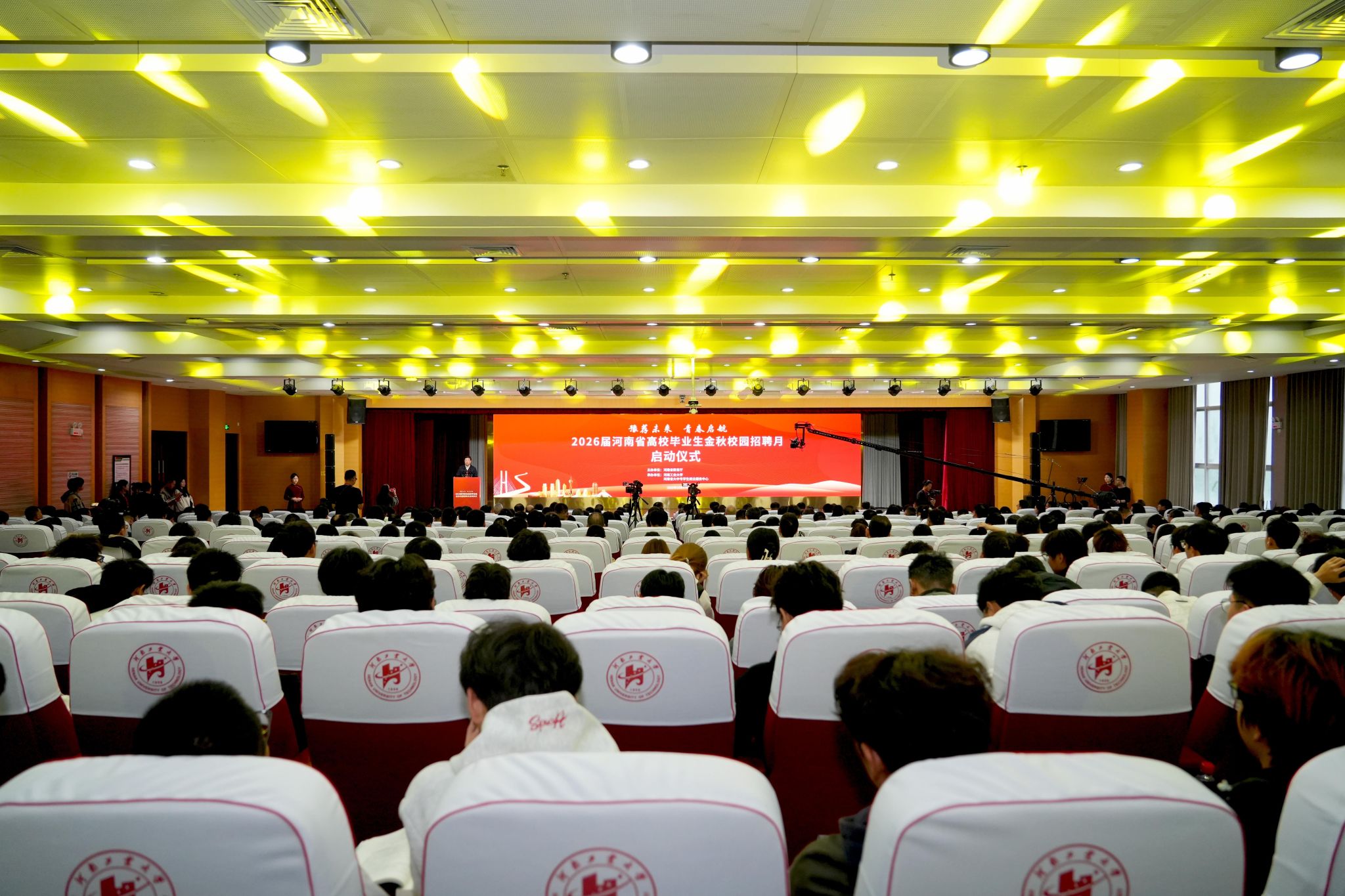 10月17日,2026屆河南省高校畢業(yè)生金秋校園招聘月啟動儀式暨秋季校園雙選會在我校舉辦。省教育廳、省發(fā)改委、省工信廳、省人社廳、省衛(wèi)健委及我校領(lǐng)導(dǎo)出席啟動儀式。省大中專學(xué)生就業(yè)服務(wù)中心相關(guān)負(fù)責(zé)同志,省人才交流中心相關(guān)負(fù)責(zé)同志,部分高校就業(yè)工作分管負(fù)責(zé)同志,省級分市場牽頭高校、駐鄭各普通高校就業(yè)部門負(fù)責(zé)同志,部分高校就業(yè)指導(dǎo)教研室主任、就業(yè)骨干教師,廣大用人單位、畢業(yè)生代表參加啟動儀式及相關(guān)活動。啟動儀式由校黨委副書記黃澤峰主持。