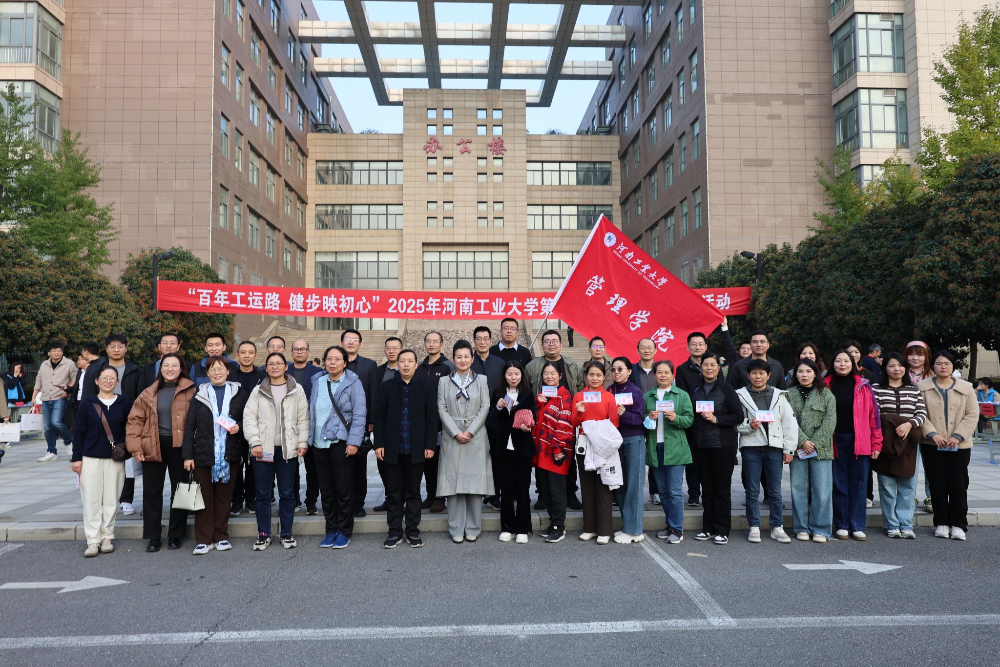 為慶祝中華全國總工會、河南省總工會成立100周年,深入弘揚工運精神,踐行健康中國理念,10月28日下午,校工會舉辦了“百年工運路 健步映初心”第十一屆教職工環校健步走活動。本次活動得到了校領導的高度重視與大力支持,吸引了全校近2500名教職工的積極響應與熱情參與,共同開啟了一場充滿活力和紅色意義的健步之旅。