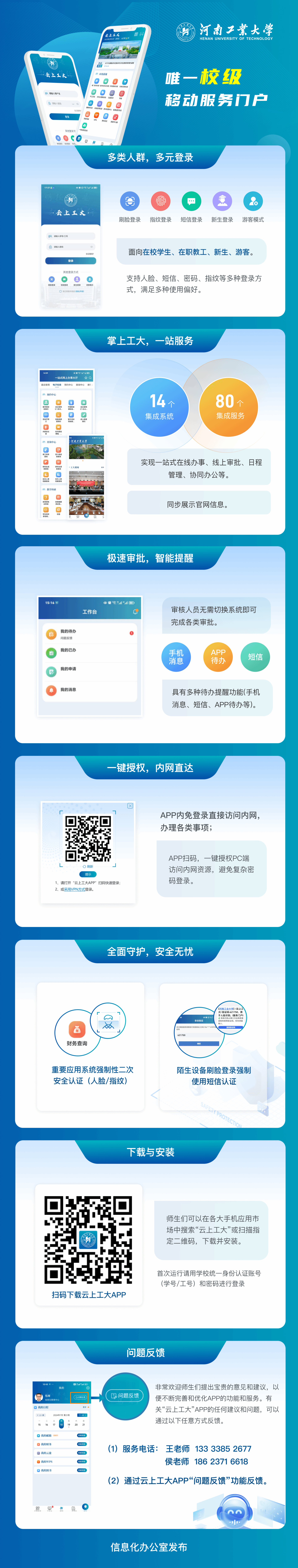 為優(yōu)化校園移動服務(wù)體驗,解決學(xué)校多個移動APP同時運行,導(dǎo)致業(yè)務(wù)分散、師生體驗感差的問題,信息化辦公室在學(xué)校各部門的大力支持下,建設(shè)完成新版融合門戶“云上工大”APP,從即日起進(jìn)入試運行階段。