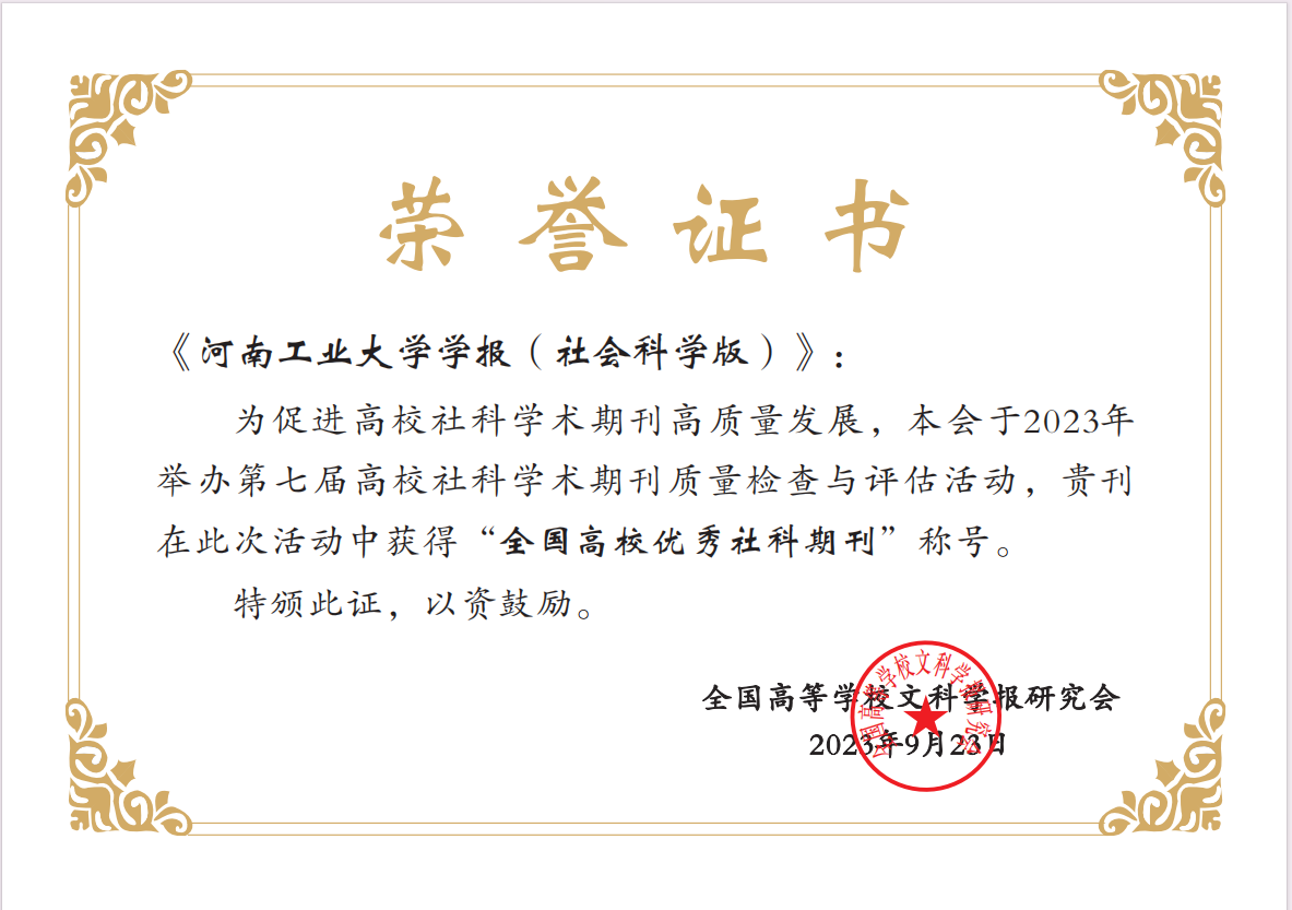 《河南工業(yè)大學(xué)學(xué)報(社會科學(xué)版)》成功獲評“全國高校優(yōu)秀社科期刊”