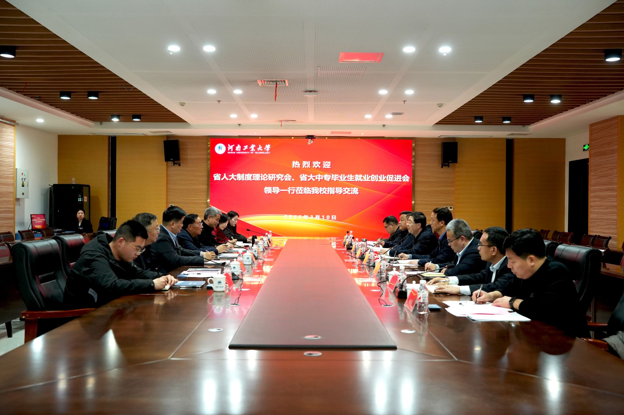03.112025省人大制度理論研究會、省促進會領導一行蒞臨學校指導交流3月10日下午,河南省人大制度理論研究會副會長李經超、河南省大中專畢業生就業創業促進會會長岳修峰一行七人蒞臨學校指導交流,并在學術報告中心D204會議室開展座談交流... -