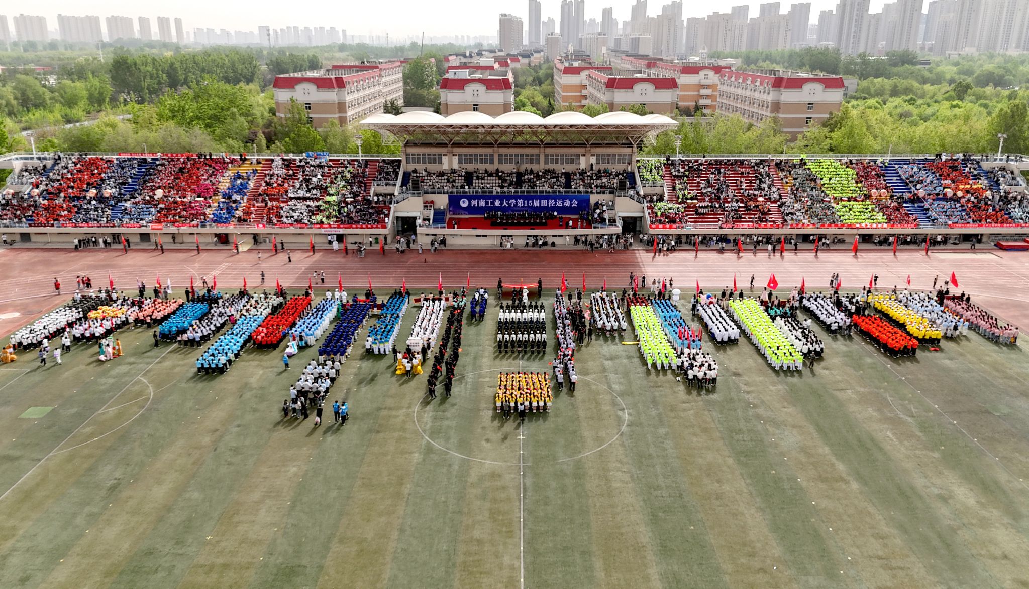 04.162025學校第十五屆田徑運動會開幕4月15日上午,風和日麗、碧空如洗,學校第十五屆田徑運動會在蓮花街校區田徑場隆重開幕。全體在校校領導、各部門和學院負責同志在主席臺就座,全校近萬名師生參加開幕式... -